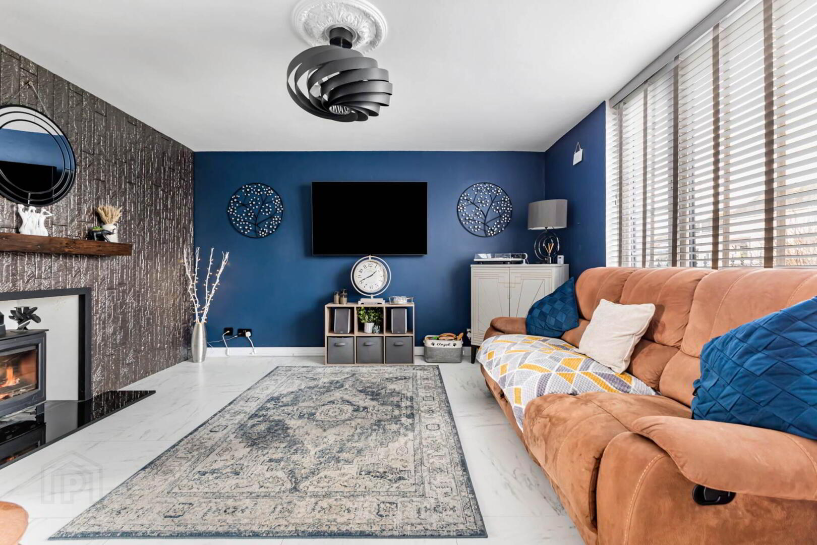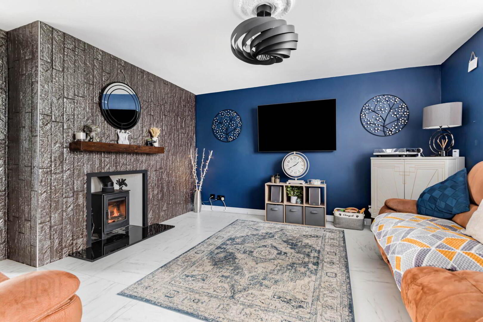 Feature multi-fuel stove. Tiled floor.