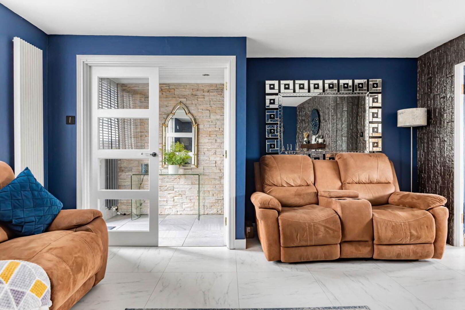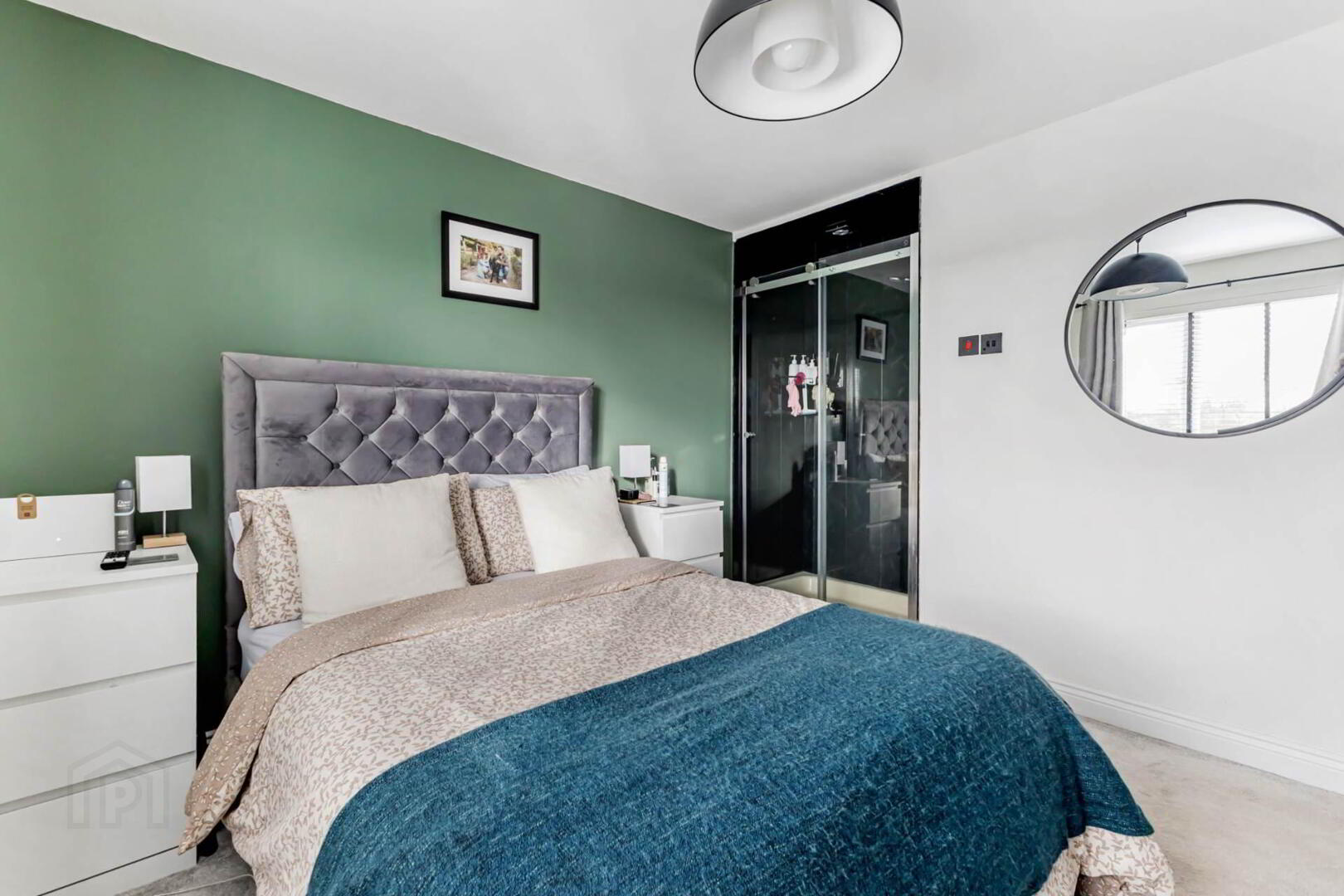 Built-in wardrobes with mirrored doors.