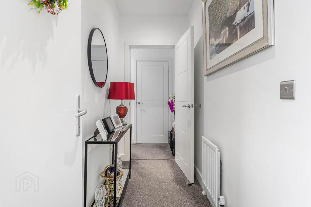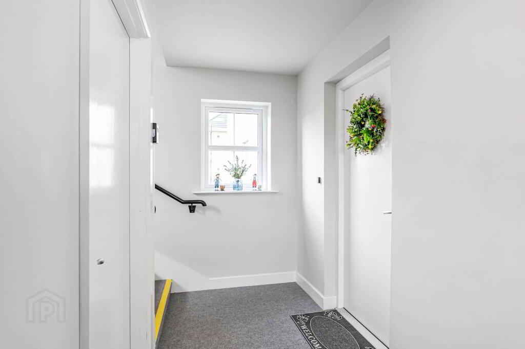 INTERNAL RECEPTION HALL Downlighters. Built-in cloaks cupboard. Built-in storage cupboard.
