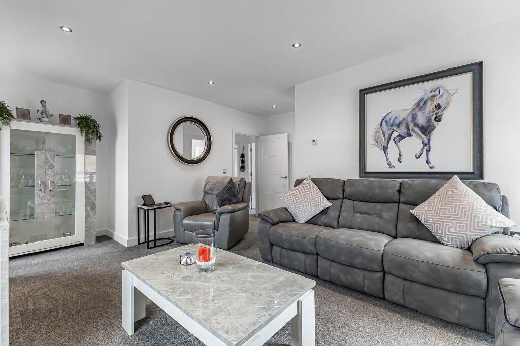 LOUNGE - 5.96m (19'7") x 3.69m (12'1") widening to 5.02 (16`6") Downlighters.