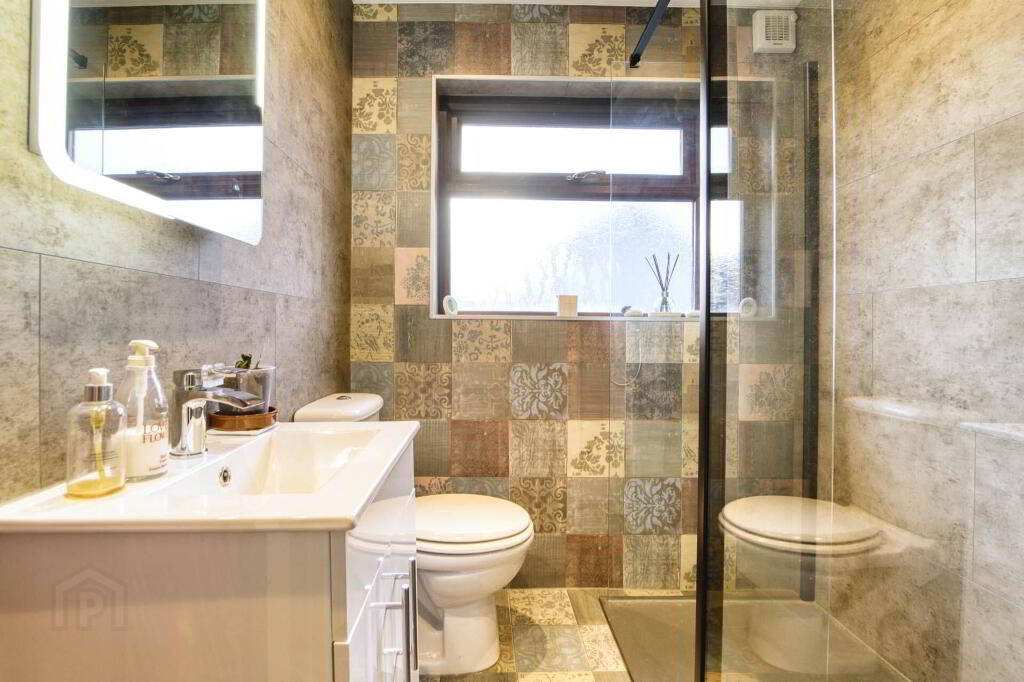 SHOWER ROOM Refitted to include walk in shower, wc, wash hand basin. Panelled walls, ceiling and floor. Extractor fan. Heated towel rail.