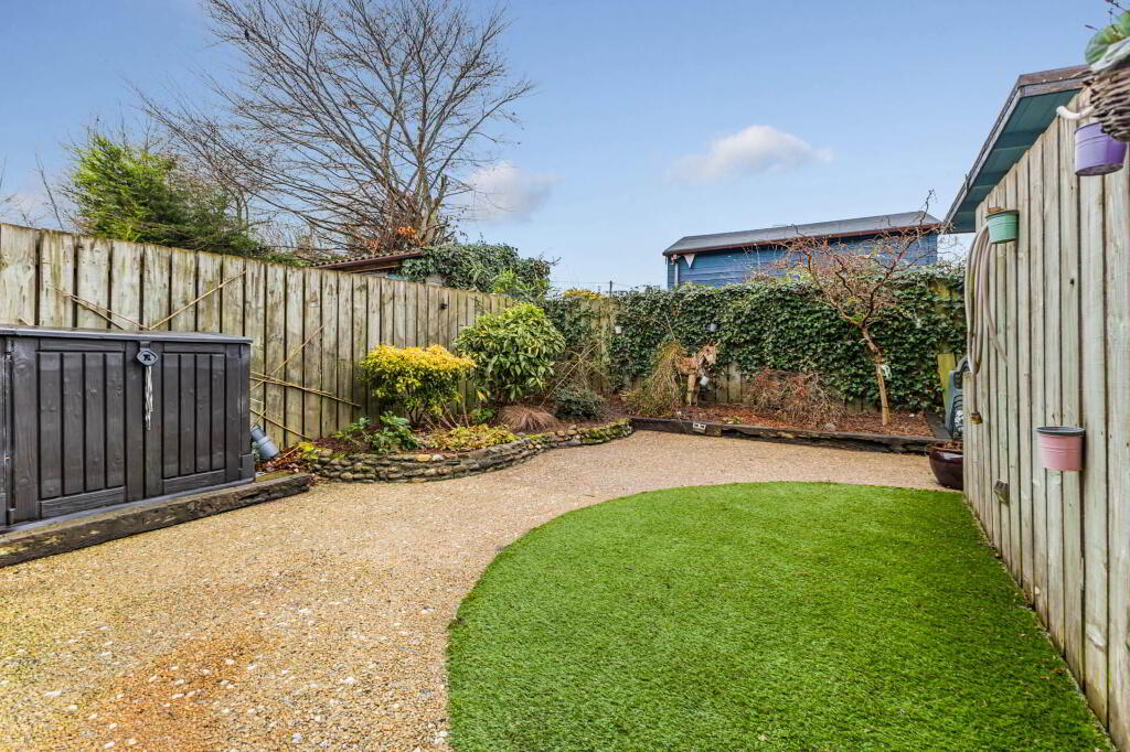 Outside: Driveway with Car port. Landscaped private rear garden comprising resin bound patio and path with small artifical lawn area. Summerhouse. Raised, well-stocked shrub beds. Timber fence surround.