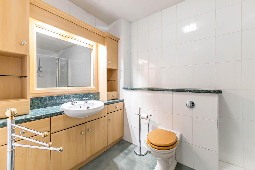 SHOWER ROOM - 3.18m (10'5") x 1.94m (6'4") Fully tiled shower enclosure with electric shower; vanity wash hand basin with cupboards and drawers below and to sides and fitted lit mirror; low flush w.c. Fully tiled walls.