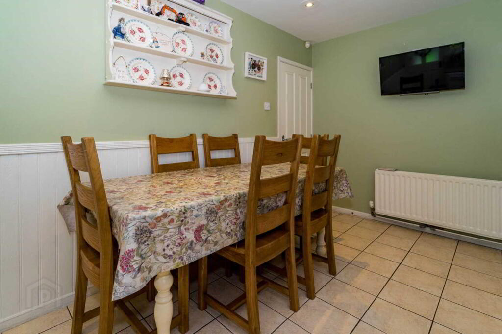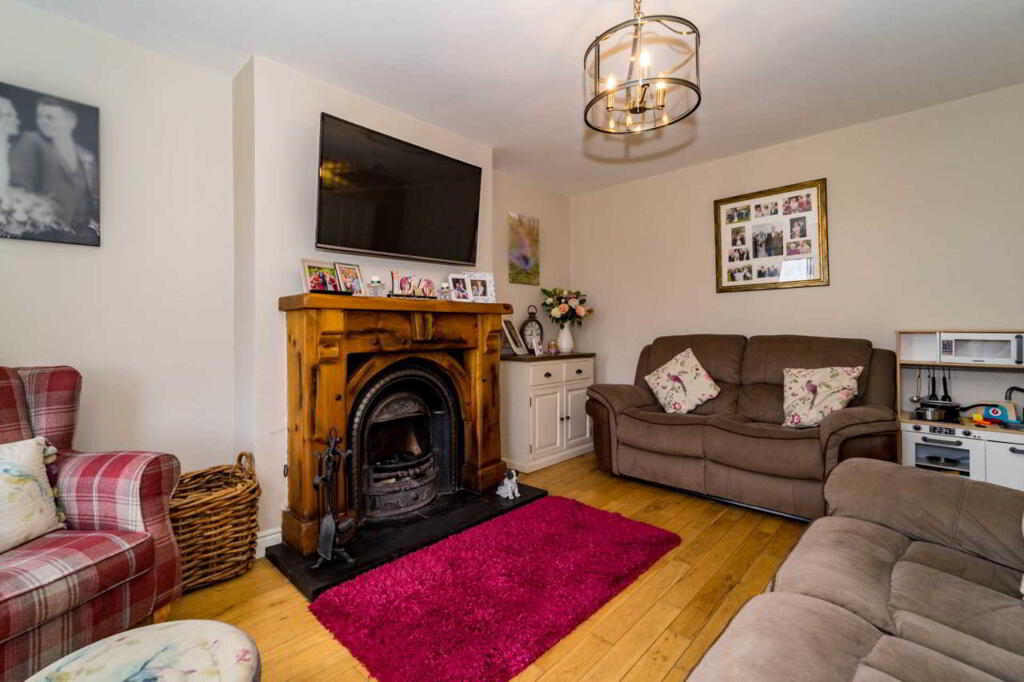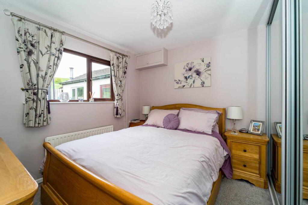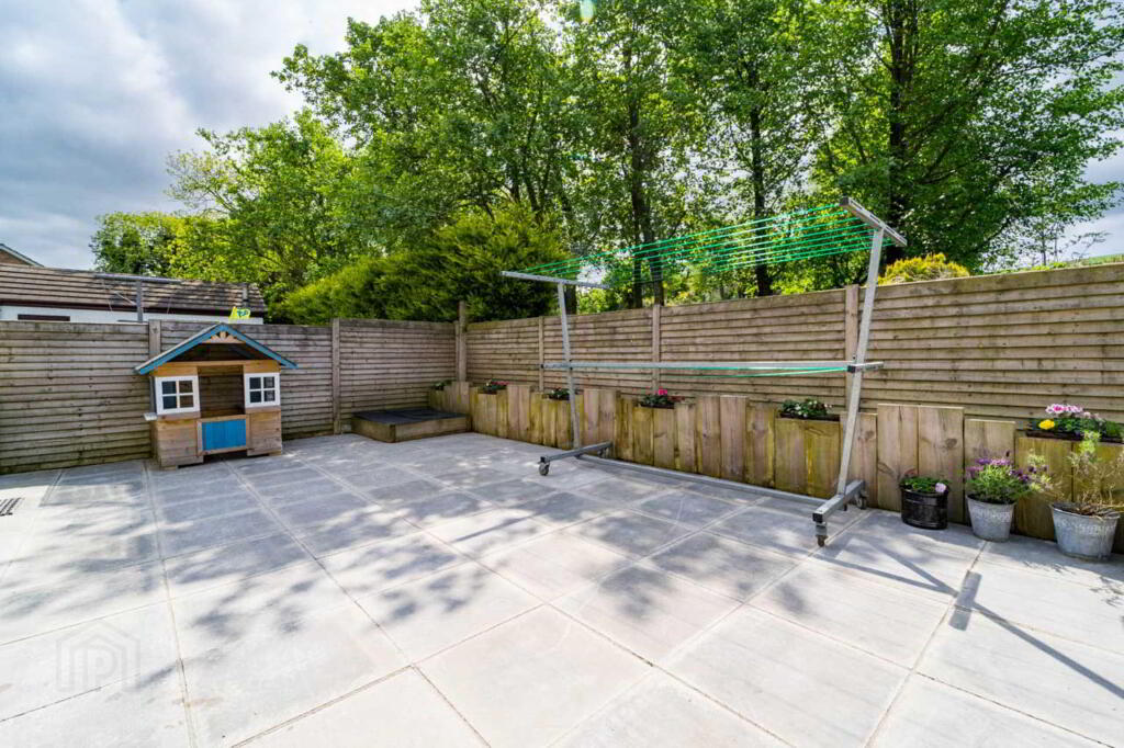 Outside: Tarmacadam driveway. Front garden laid to lawn. Fully enclosed paved area to rear. Timber fence to rear. Detached Garage (5.2 x 3.1) with roller door, PVC side door. Outside lighting. Lean-to storage to rear of garage.