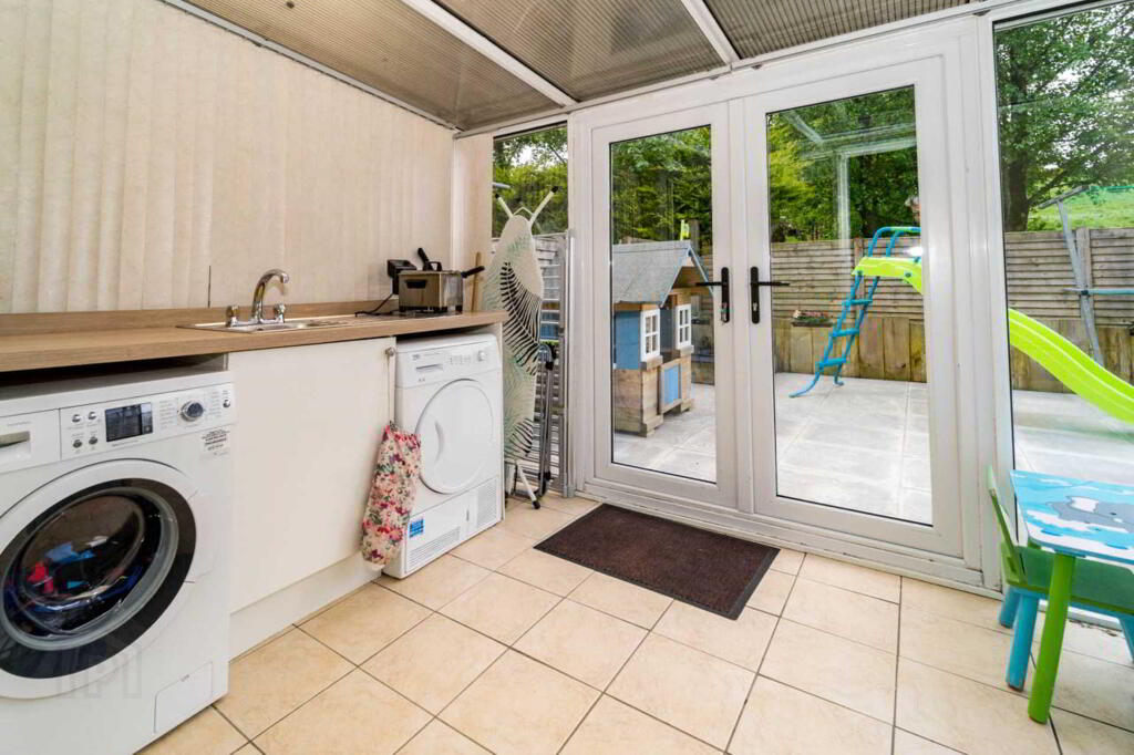 CONSERVATORY/UTILITY - 3.15m (10'4") x 2.47m (8'1") Tiled floor. Plumbed for washing machine. Single drainer stainless steel sink unit with mixer tap. Space for condensor dryer. PVC patio doors.