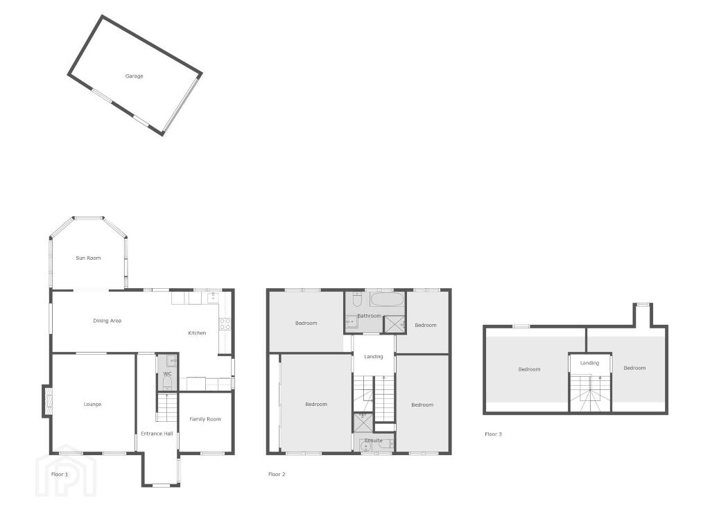 First floor: Principal Bedroom with Ensuite Shower Room; 3 further Bedrooms; Bathroom.