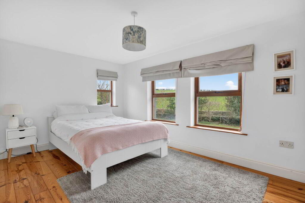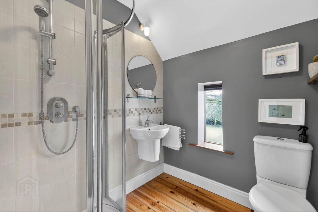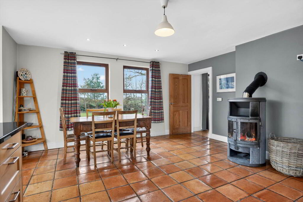 The property has been constructed and finished to an excellent standard, with notable features including Bangor Blue roofing slates and concrete Bison first-floor construction. Internally, there is an attractive combination of limestone tiling, hardwood flooring, and bespoke finishes throughout. Underfloor oil-fired central heating serves both floors, with individual room controls, complemented by double-glazed windows.