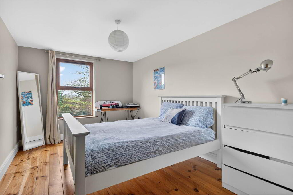 Maple wooden flooring. Downlighters. Fitted desk, shelving and cupboards.