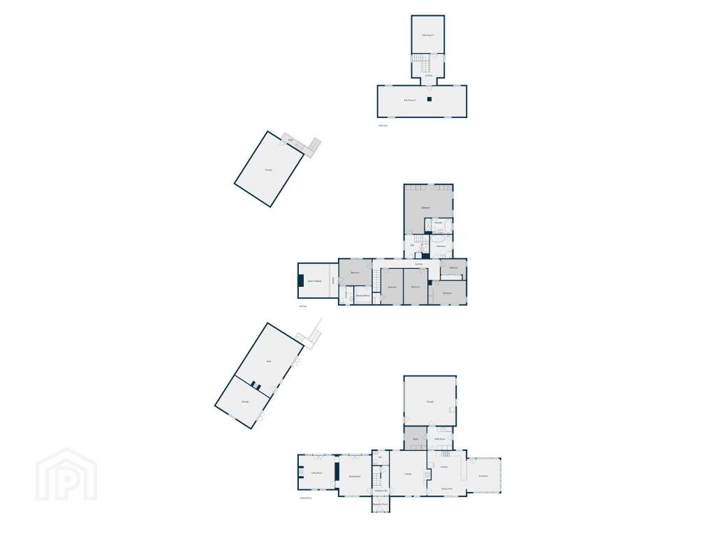 Approached via an impressive pillared entrance, a sweeping driveway winds through mature, landscaped gardens, offering ample parking and a strong sense of privacy. The grounds are laid primarily in lawn and enhanced by a variety of established native trees and shrubs.