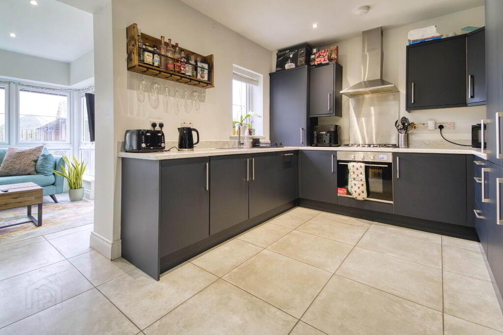 KITCHEN/DINING AREA - 5.47m (17'11") x 2.97m (9'9") Extensive range of high and low level units. Large and small bowl stainless steel sink unit with mixer tap. 4 ring gas hob and built-in oven. Stainless steel splashback and stainless steel extractor unit. Integrated dishwasher. Integrated fridge freezer. Integrated washing machine. Downlighters. Tiled floor.